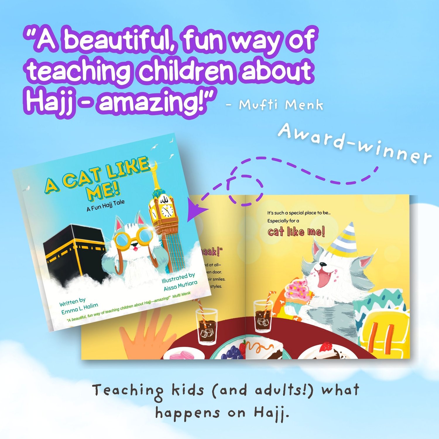 - My award-winning, Mufti Menk said it was 'amazing!' Hajj book told by a cheeky cat. Teaches the entire Hajj journey from beginning to end.