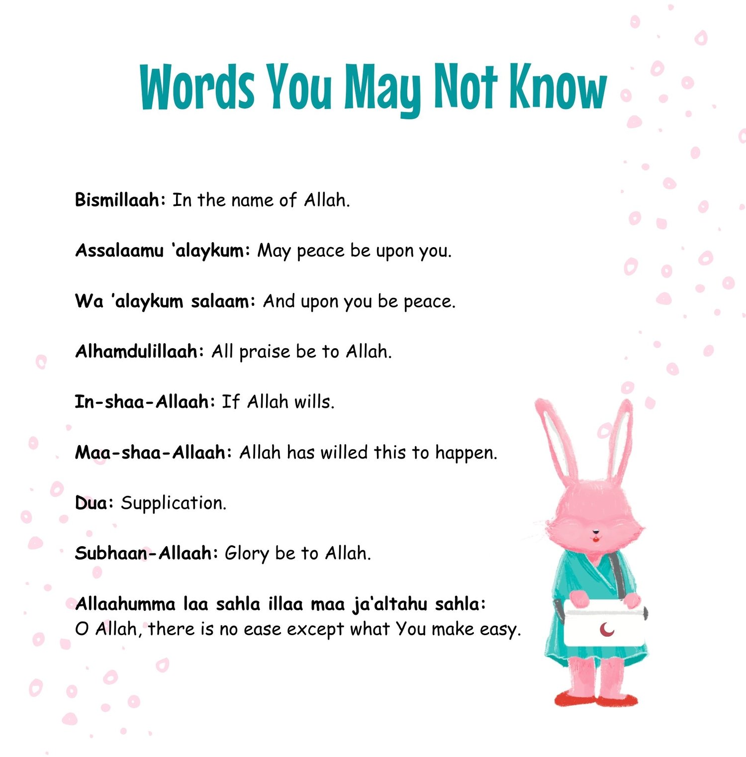 - Includes duas and Islamic dhikr to help connect kids to Allah
