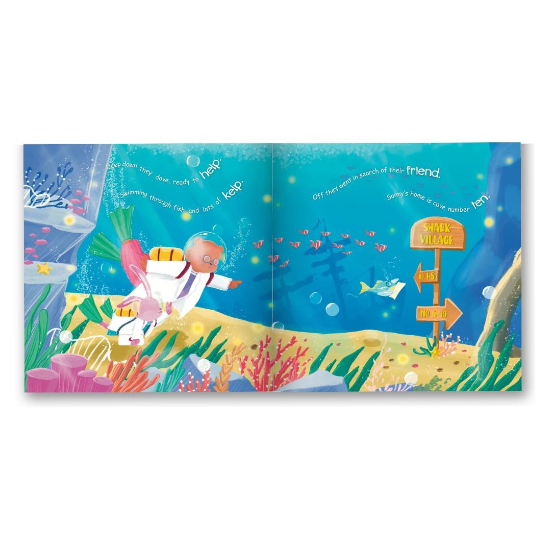 Sonny the shark is faced with a terrible toothache, so he makes a call to his trusted dentist, Doctor Bear, and her assistant Helpful Bunny. But Sonny lives under the sea - will they be able to help their loveable friend?