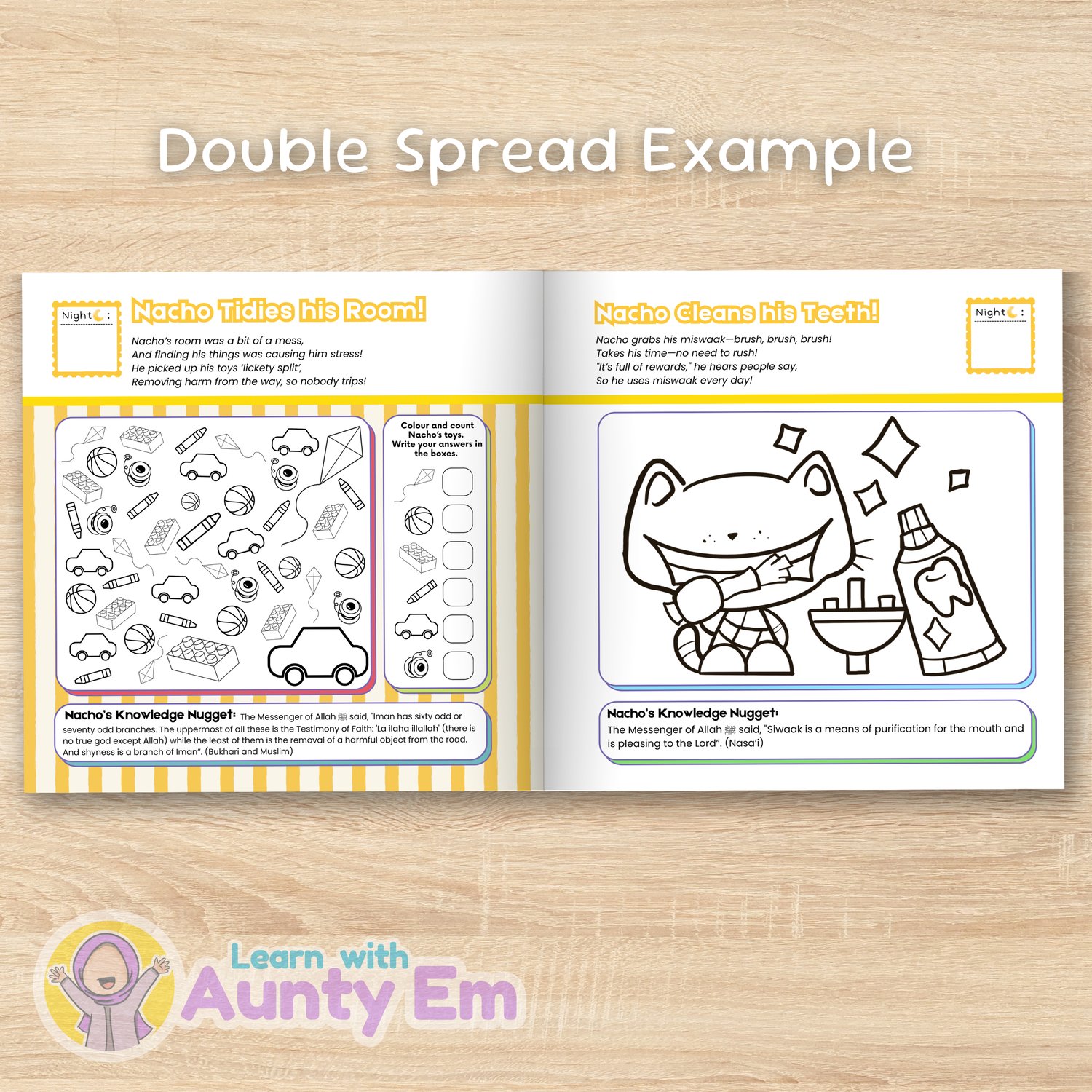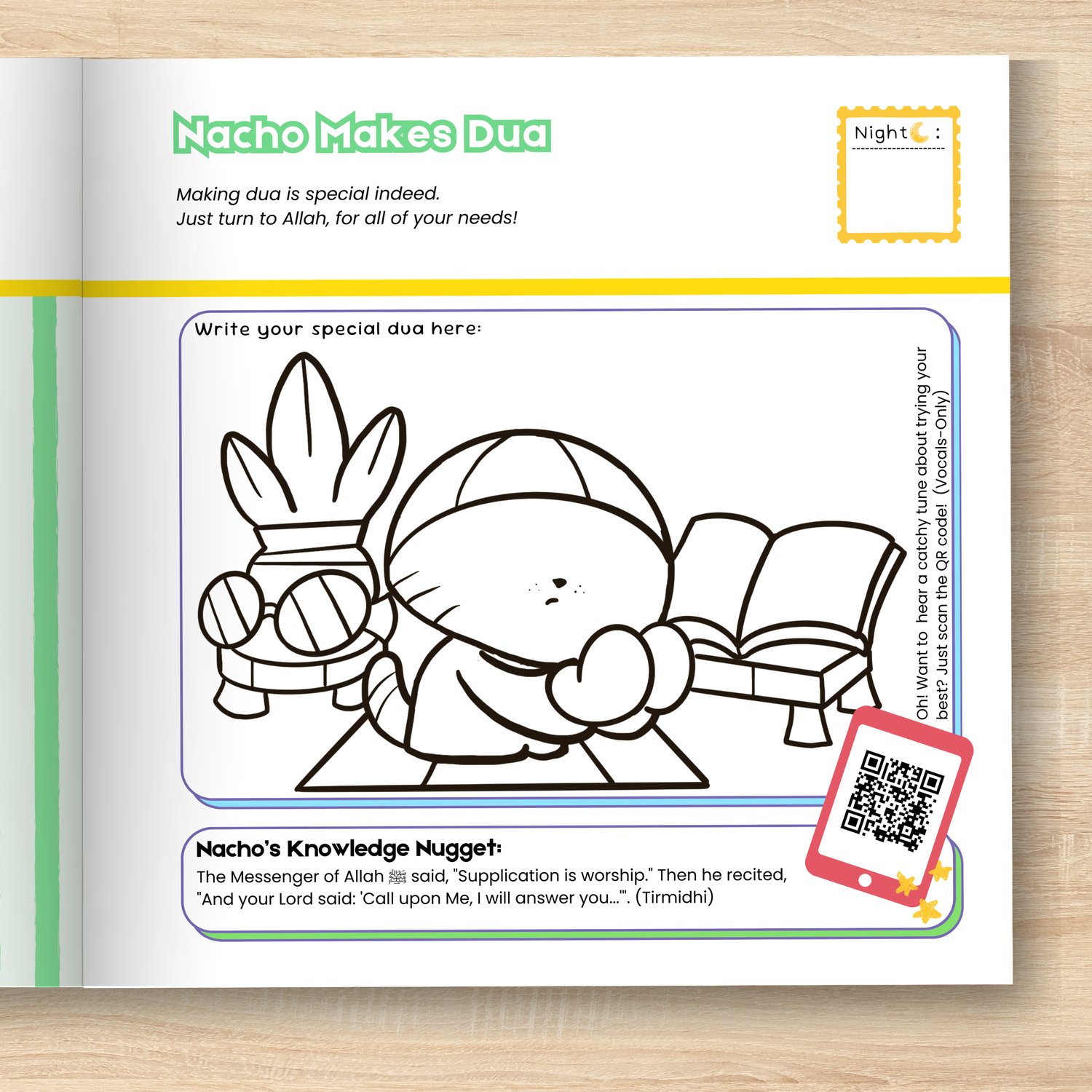 With a "Knowledge Nugget" for every day, Nacho discovers beautiful Sunnahs and Quranic Ayahs that turn his daily adventures into moments of beneficial learning.