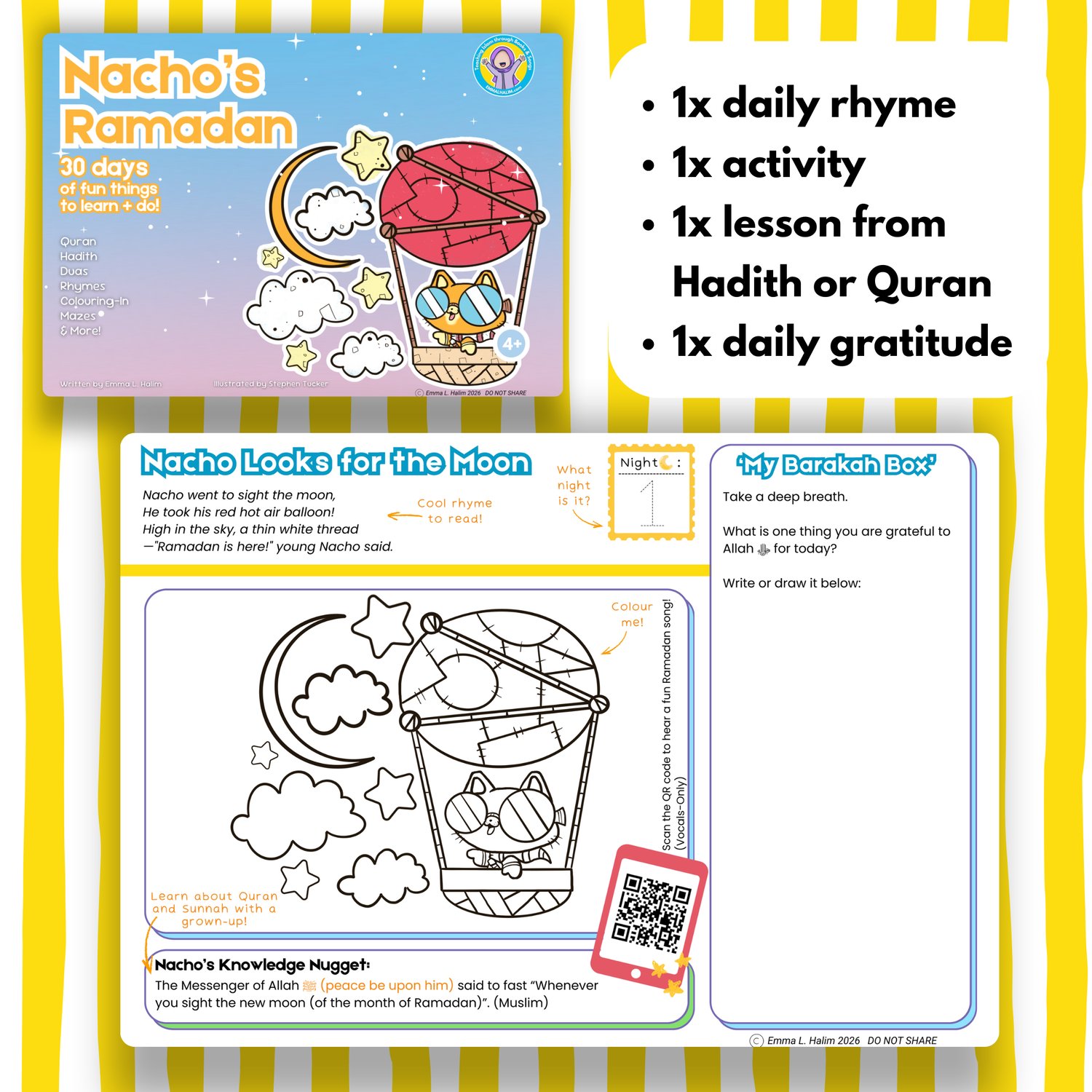 - As a fun BONUS, your child can enjoy a page of Nacho's Ramadan Activity Book.
