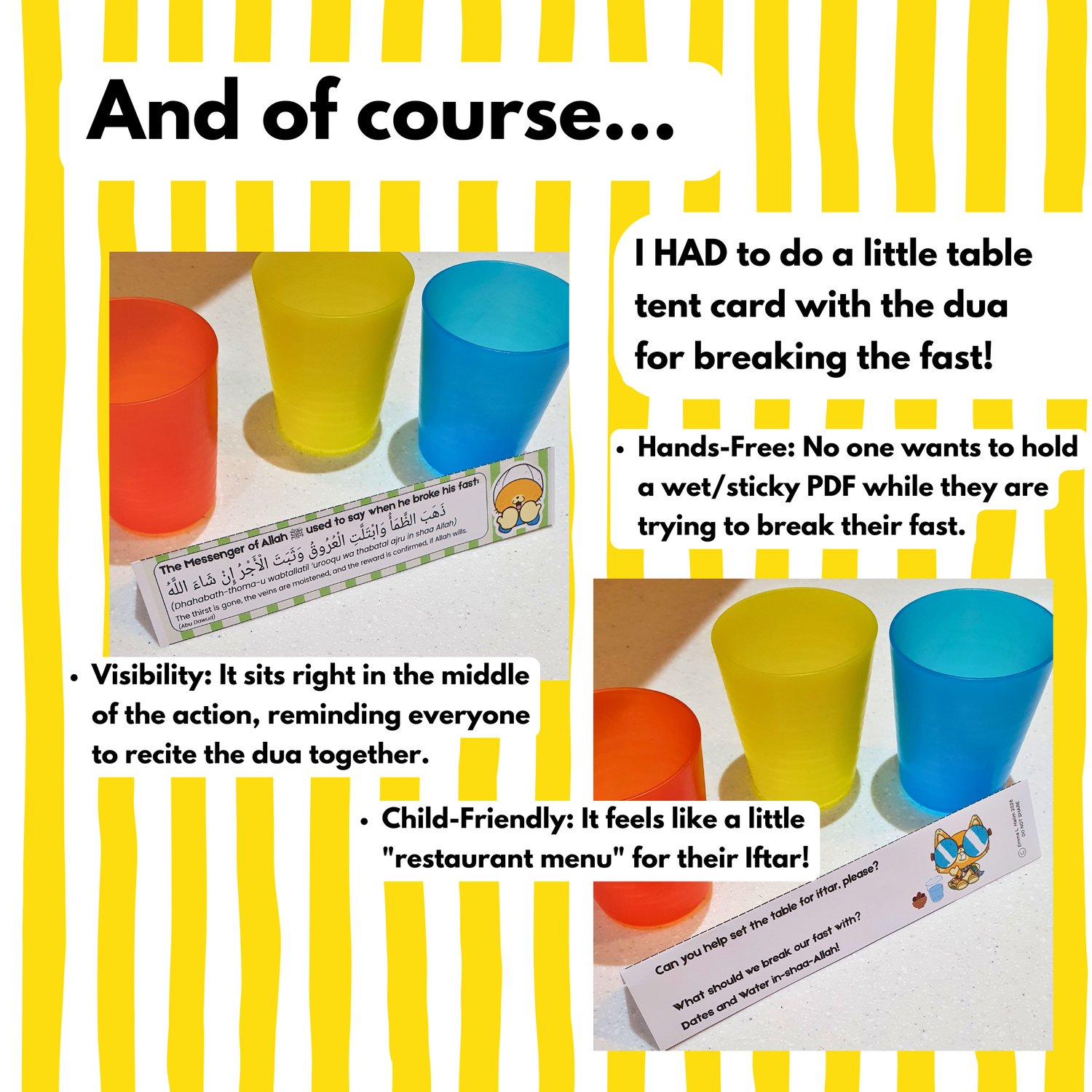 - π The Foldable Iftar Dua Tent: A hands-free, triangular name-plate style card for your table so the whole family can learn the breaking-of-the-fast dua together.