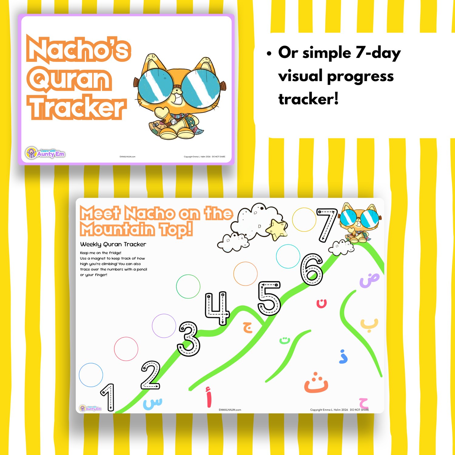 - β°οΈ Nacho's Quran Tracker: Two versions included! A quick 7-day fridge tracker and an interactive "cut-and-glue" project, for all the 'crafty kids' (...erm, and adults π).